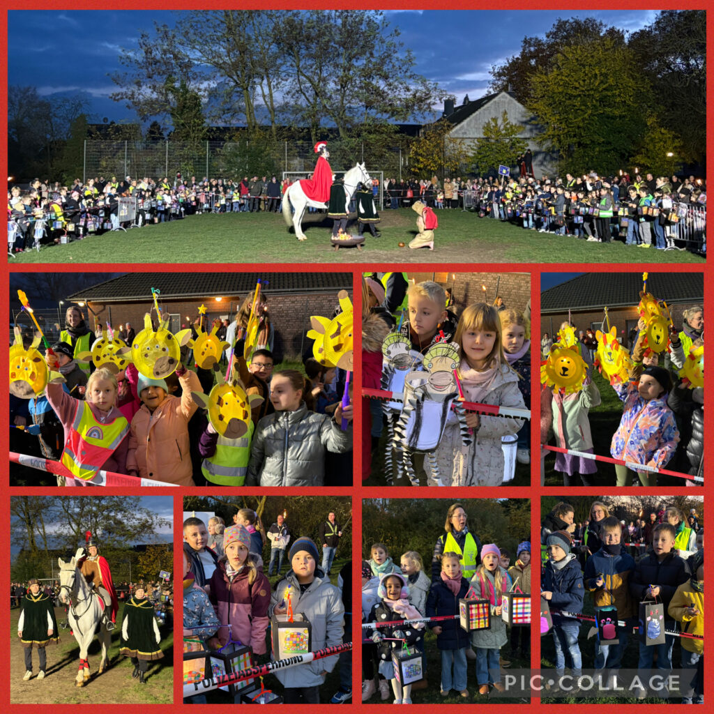Am Sonntag fand unser Martinszug statt. Bei bestem Herbstwetter mit sehr milden Temperaturen konnten die Kinder auf dem Schulhof das Martinsspiel beobachten und anschließend eine große Runde durch die Straßen von Leegmeer ziehen. Viele Zuschauer freuten sich über die bunten Laternen und die Kinder staunten über die geschmückten Gärten und Häuser. Einen schönen Abschluss bildete in diesem Jahr auch wieder die Ansprache von Sankt Martin in der Heilig Geist Kirche.