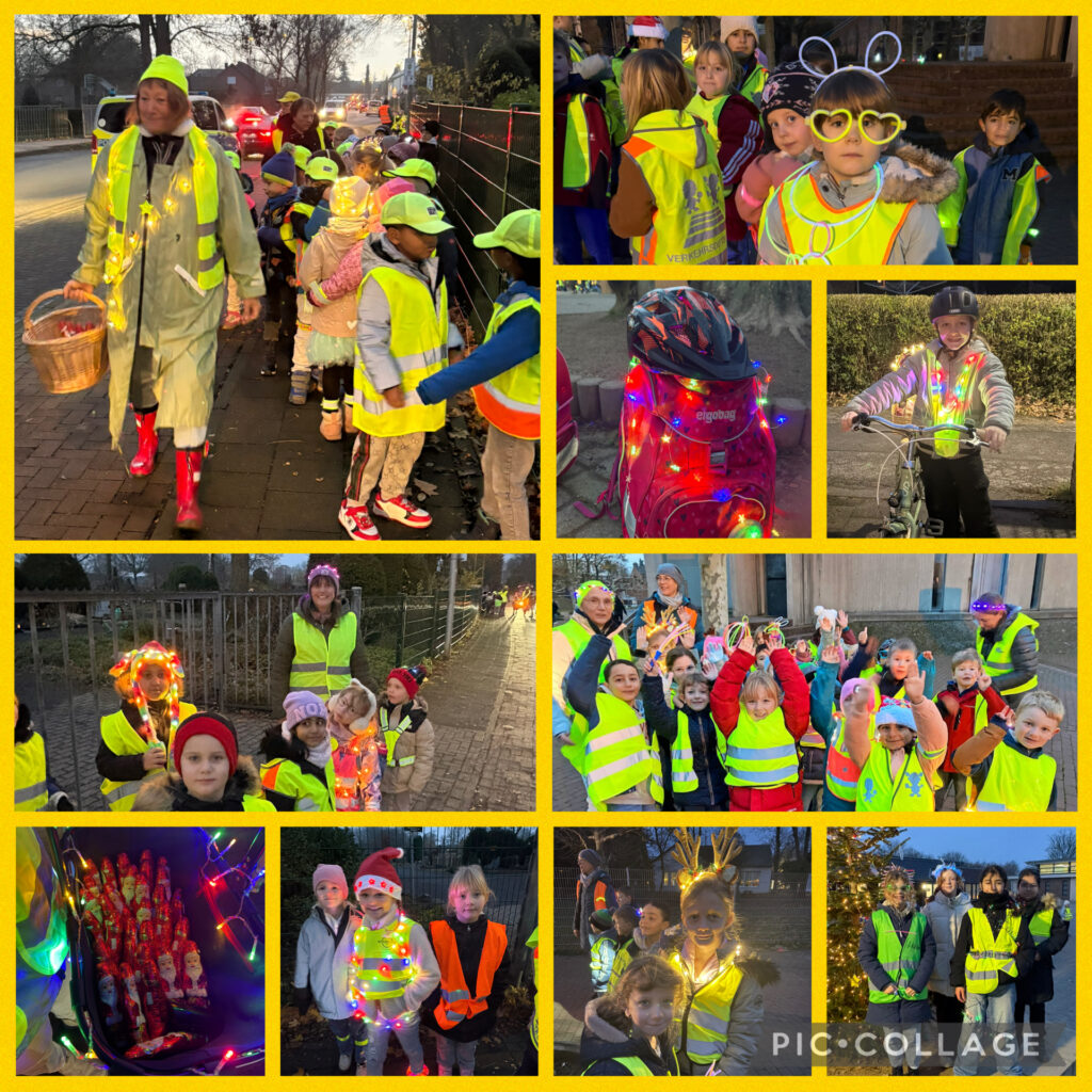 Am Donnerstag veranstaltete unsere Schule einen Glühwürmchen-Tag. Die Kinder kamen an diesem Morgen besonders sichtbar, bunt und leuchtend zur Schule und setzten damit ein strahlendes Zeichen für mehr Sicherheit im Straßenverkehr. Wir möchten uns ganz herzlich bei allen Eltern für die wunderbare Mitgestaltung bedanken. Ihre kreativen Ideen – von reflektierender Kleidung über Warnwesten bis hin zu liebevoll dekorierten Blinkies und Lichterketten – habe diesen Tag zu einem besonderen Erlebnis gemacht. Ein besonderer Dank gilt auch der Polizei und dem Ordnungsamt, die uns bei diesem Aktionstag tatkräftig unterstützt haben. Wir danken auch allen Eltern, die die Hol- und Bringzone ordnungsgemäß genutzt haben. Unsere Erstklässler haben sich sehr gefreut, diesen Eltern dafür einen kleinen Schoko-Weihnachtsmann zu überreichen. Nun hoffen wir sehr, dass die Idee des „Leuchtens“ auch weiterhin nachhaltig umgesetzt wird. Auf folgender Seite findet man Tipps zur Erhöhung der Sicherheit in der dunklen Jahreszeit: